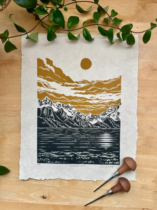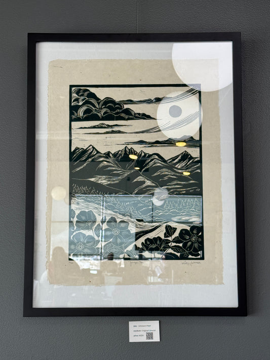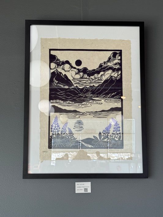 Framed Original Linocut 'Lost Lake' Print at SteamDot