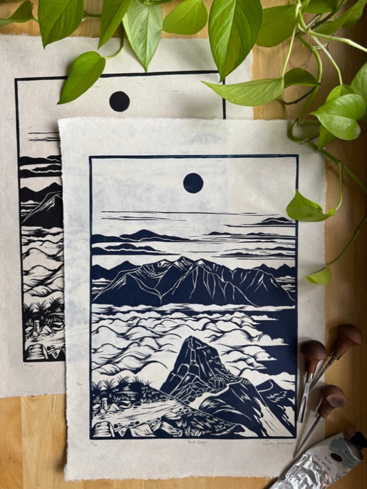 Framed 'Bird Ridge' Original Linocut at SteamDot