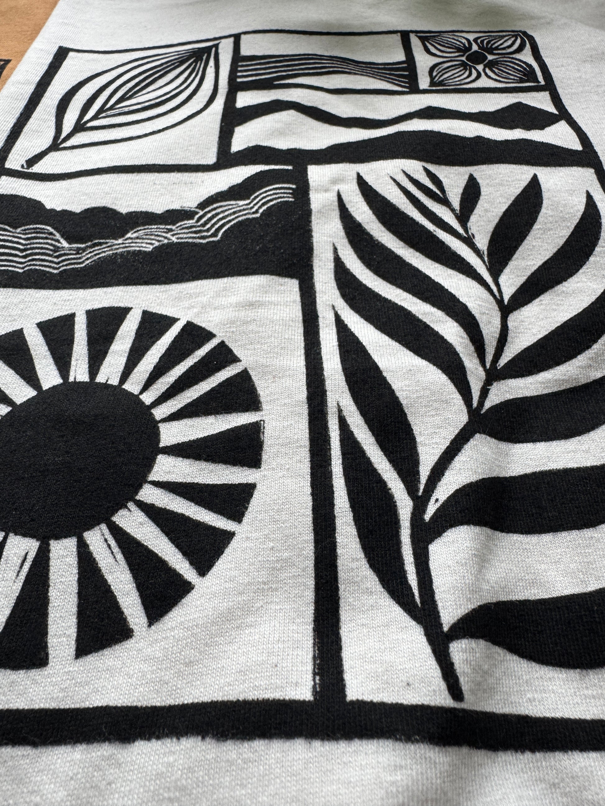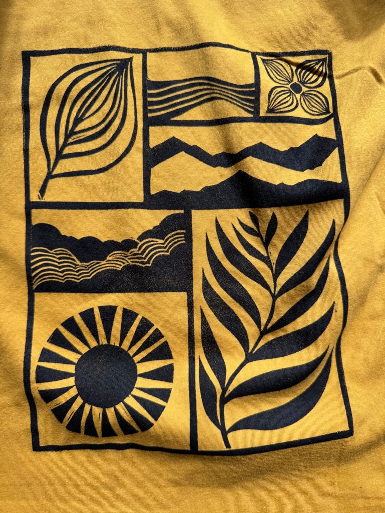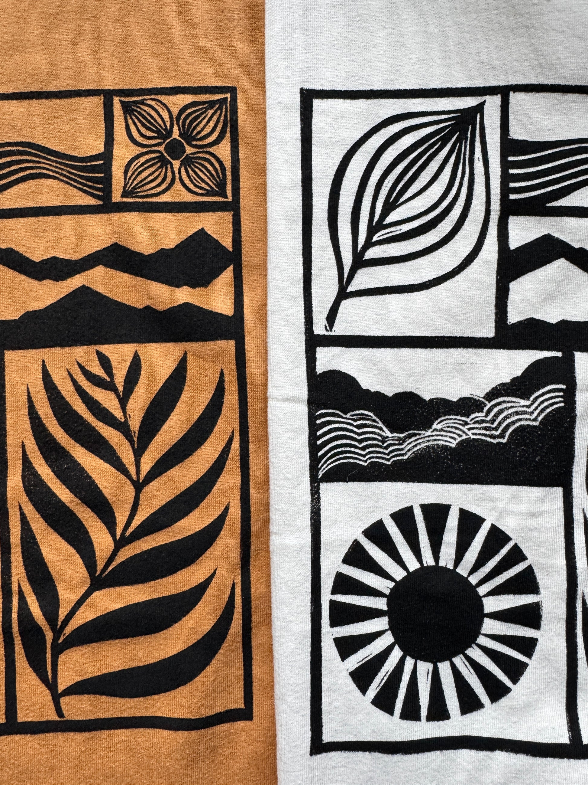 I created this minimalist design to represent the best parts of an Alaskan summer ‣ sunshine, fireweed leaves, endless mountains and a big sky. Each one was hand-printed with love!