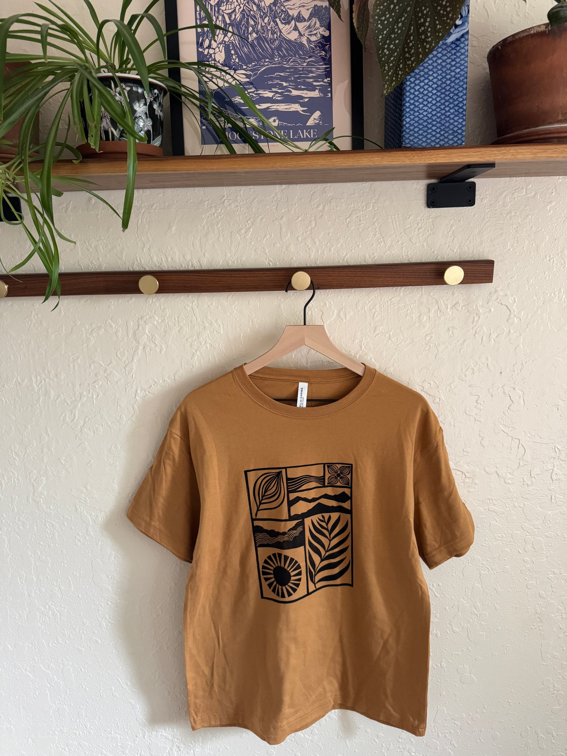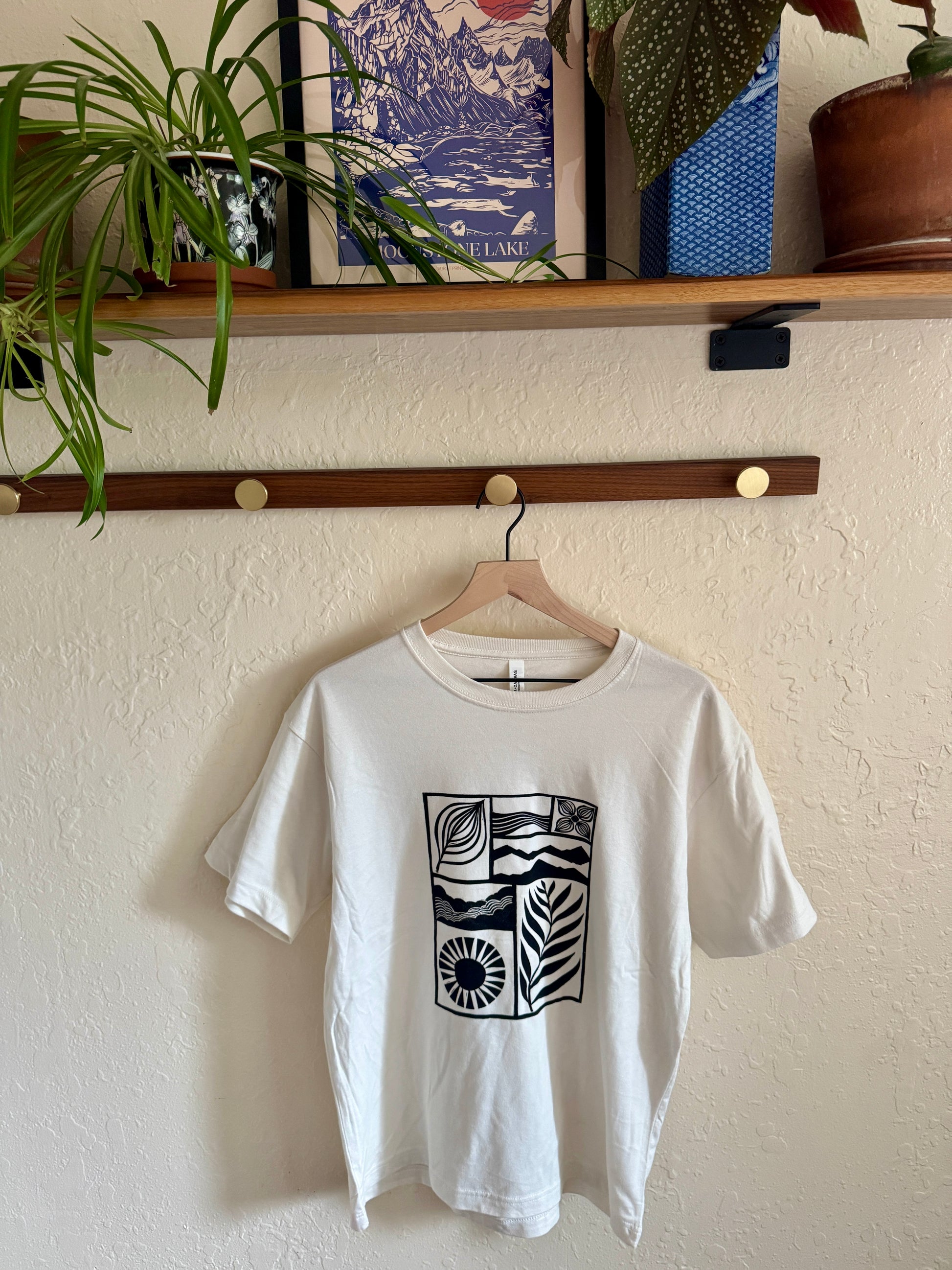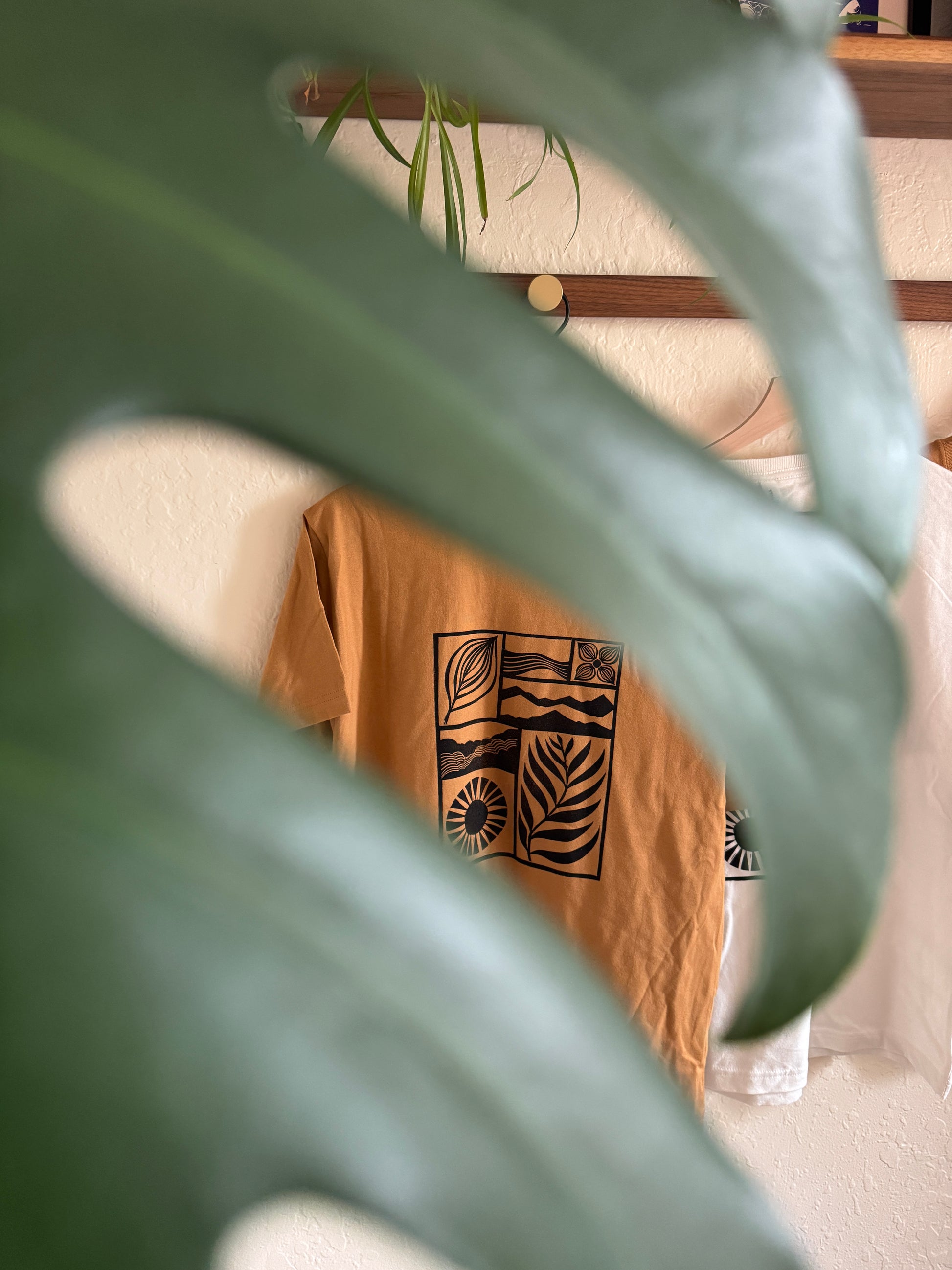 I created this minimalist design to represent the best parts of an Alaskan summer ‣ sunshine, fireweed leaves, endless mountains and a big sky. Each one was hand-printed with love!
