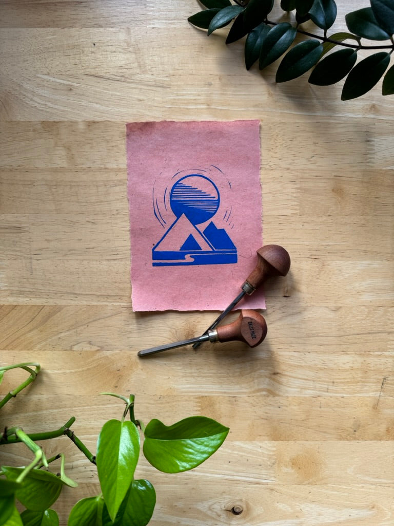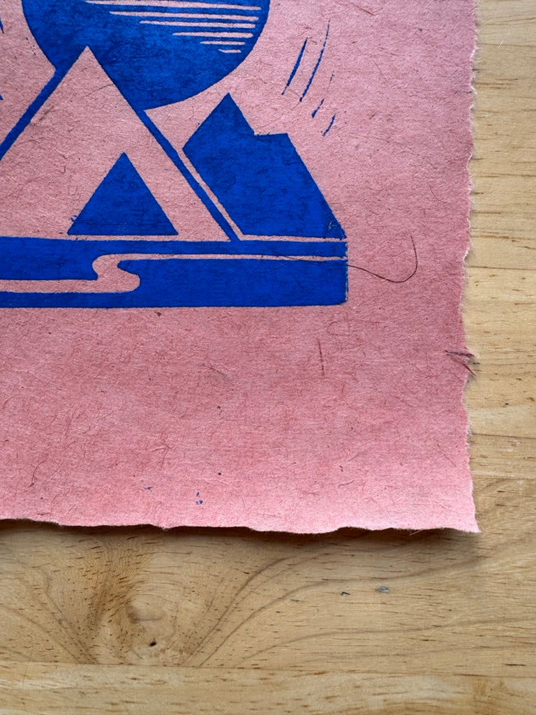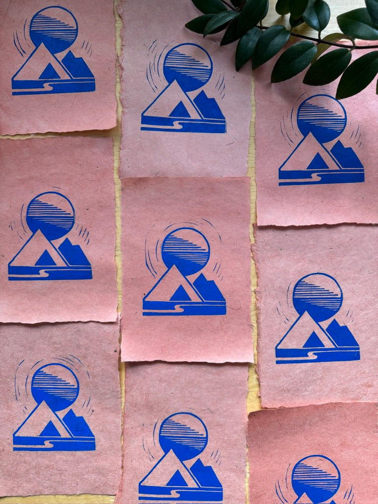 - Cobalt blue ink. Printed on beautiful, earthy pink natural Lokta paper.