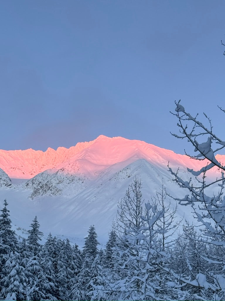 Who's your favorite person to wake up next to in a tent? Eat too much trail mix with? Tell them you love them with a mountain mini-print inspired by Alaska's January alpenglow.
