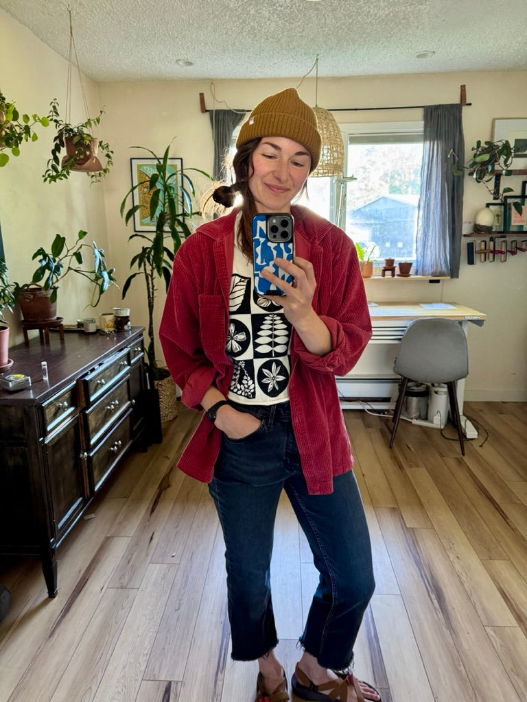 - My size: at 5'4" + 130lbs, I like the S unisex, or a M for a more oversized fit. For specific sizing info, check out the Bella + Canvas site