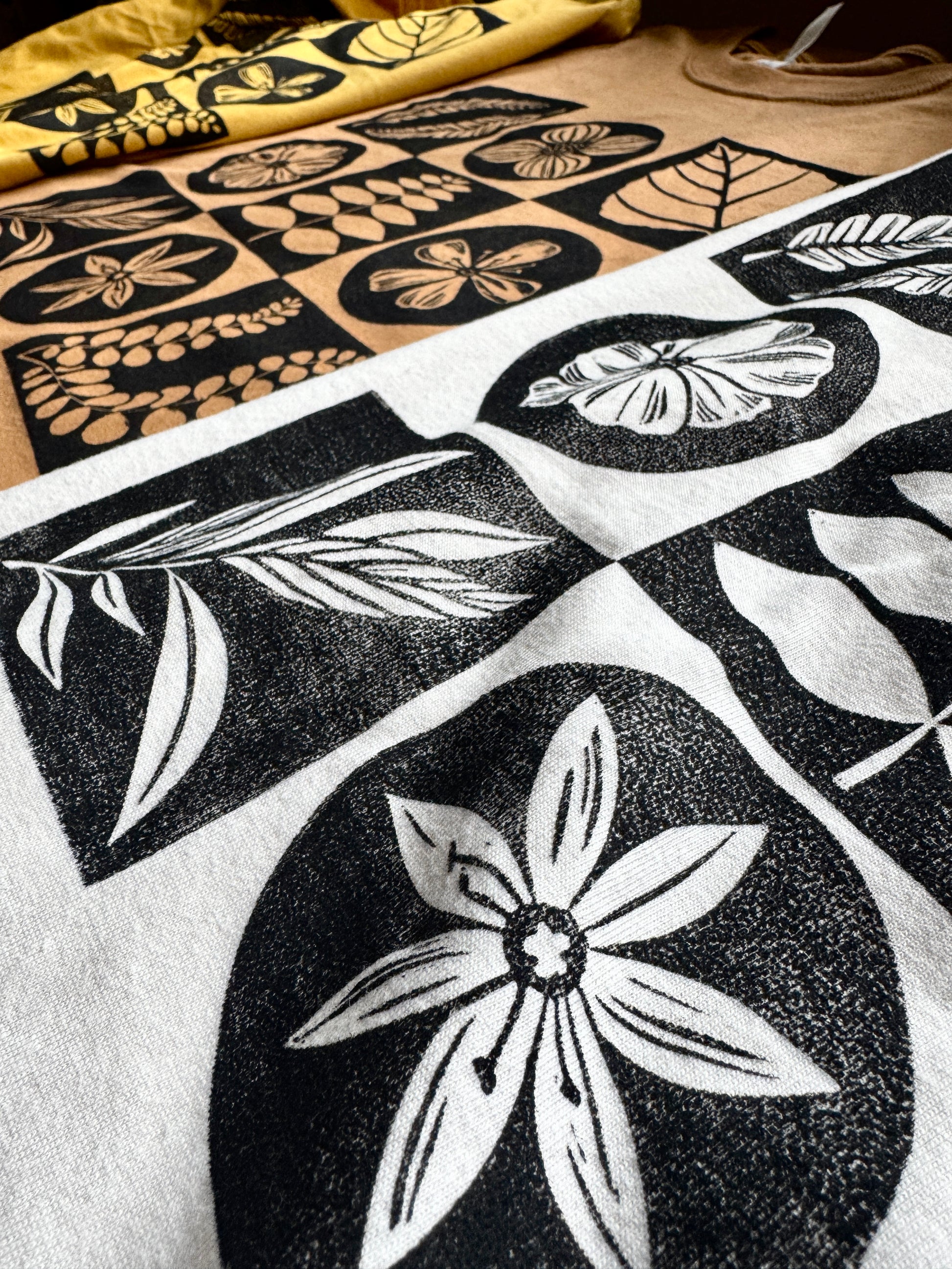 Manifest summer vibes while you're wearing this hand-printed tee! Design features dwarf dogwood, moss campion, and mountain aven blossoms among other leafy Alaskan flora.