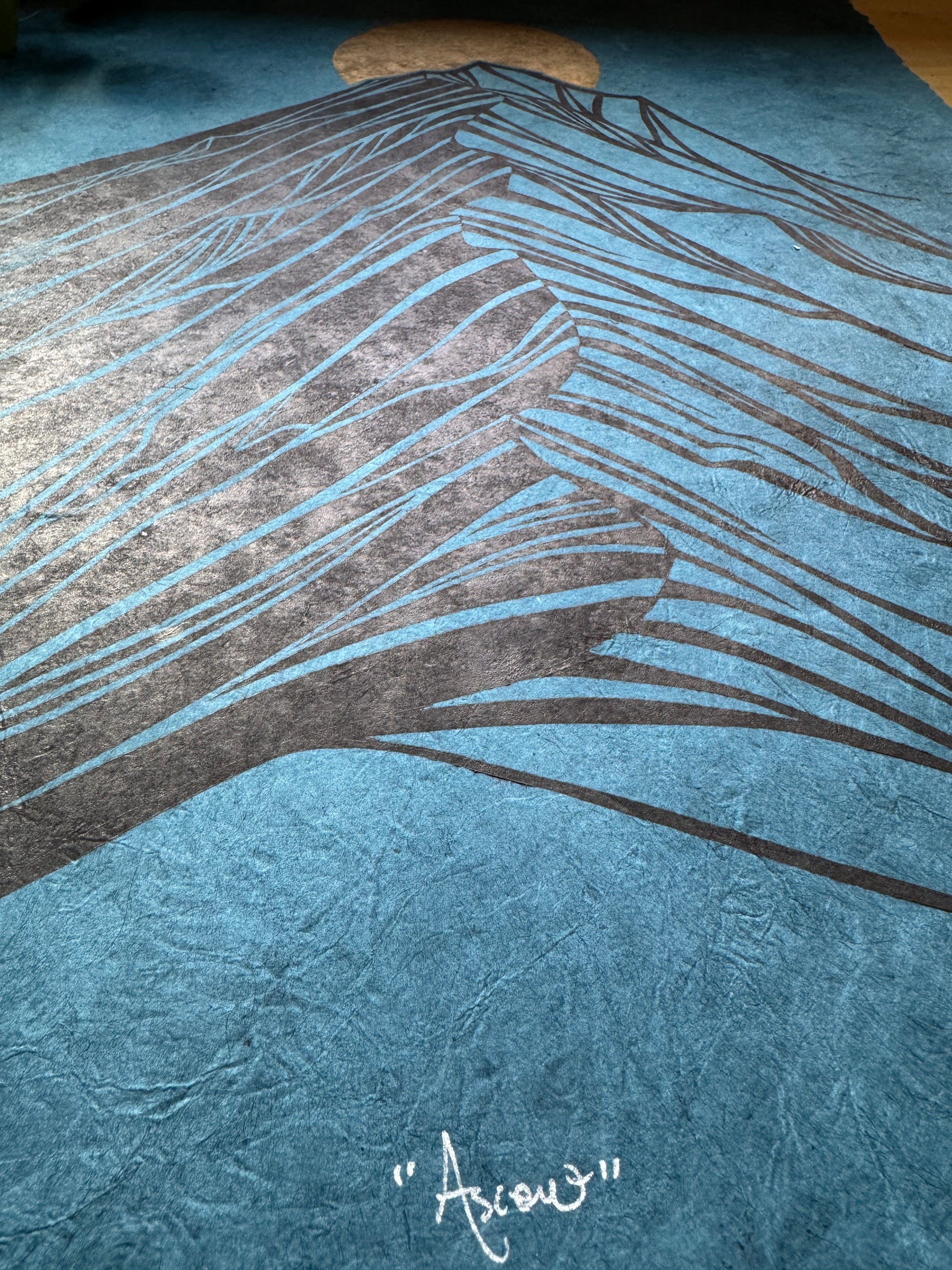 Prints are individually inked and pressed using archival, oil-based inks on beautifully textured Lokta paper. This is a sustainable paper, handmade in Nepal with gorgeous flecks of fiber and texture. Each print is pressed by me with unique variations from print to print, beautifully original.