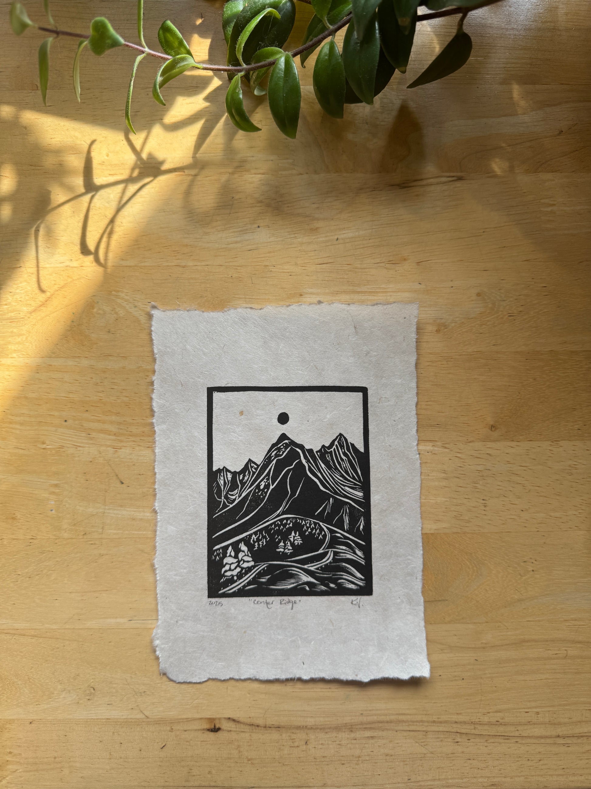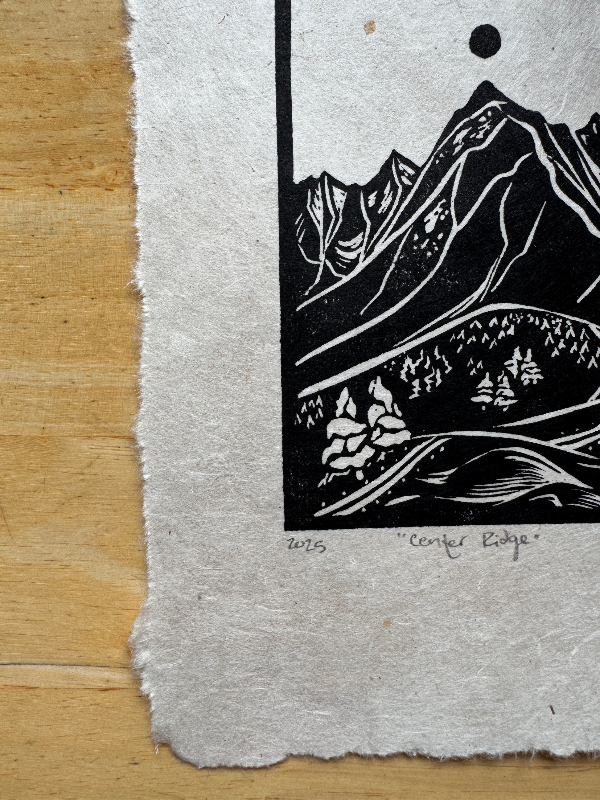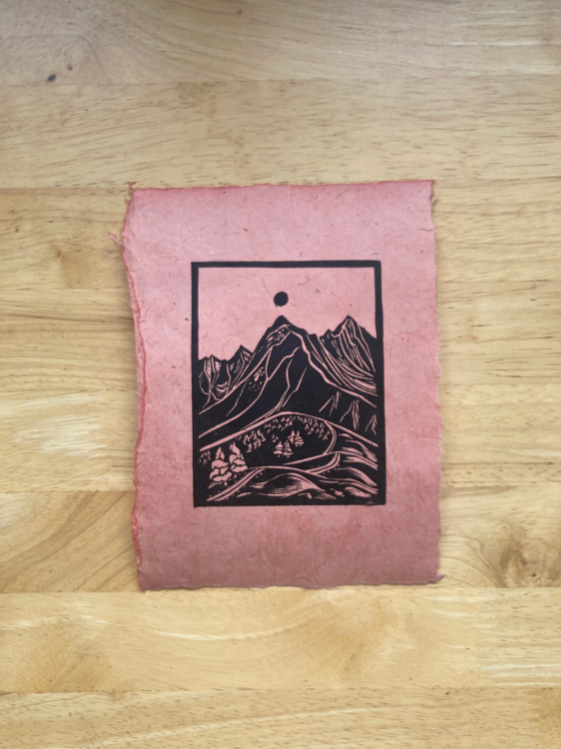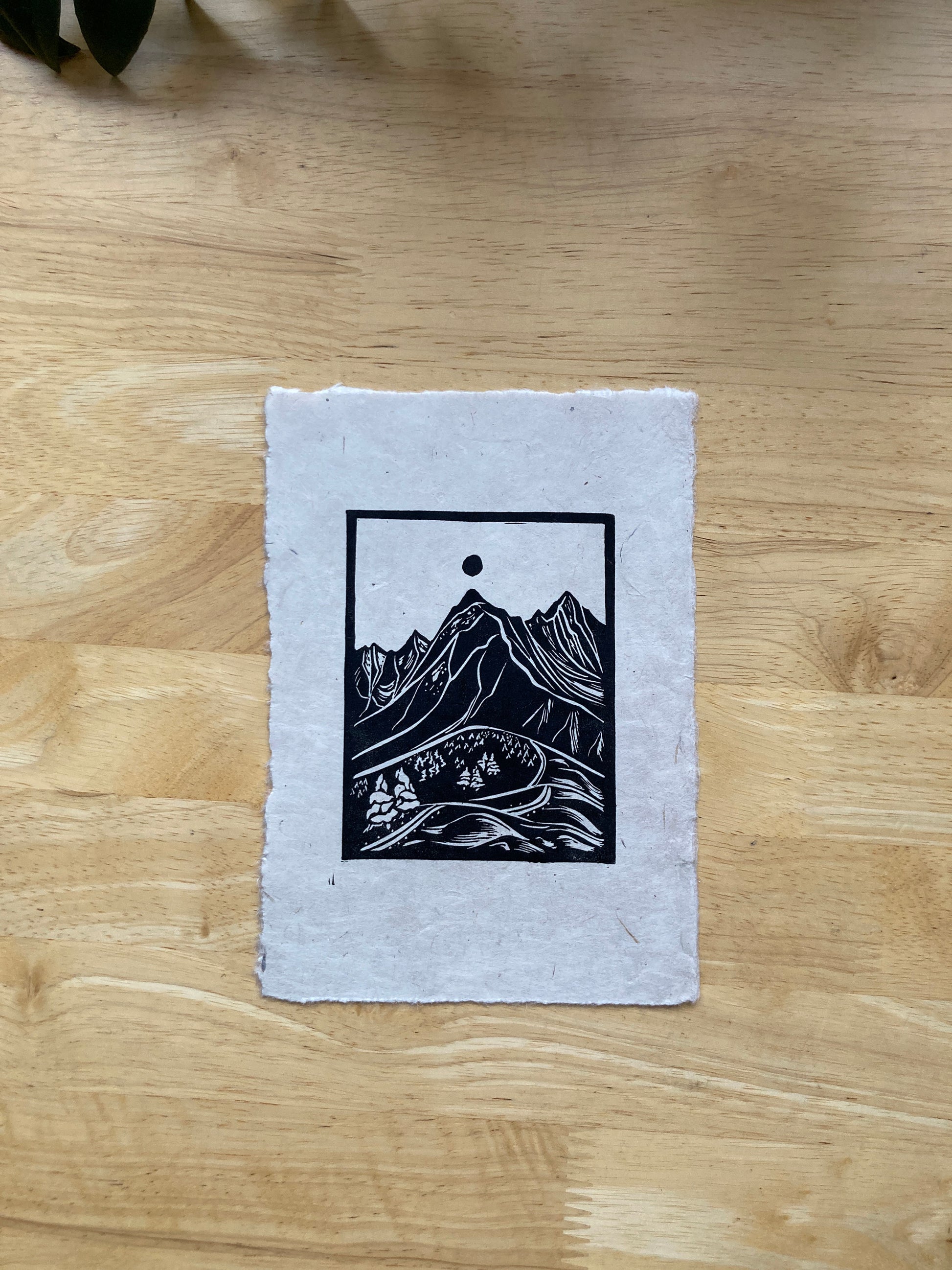 Ink is archival, oil-based and velvety black. Printed on acid free, natural Lokta paper. This is a sustainable paper, handmade in Nepal, with gorgeous flecks of fiber and texture - due to the handmade nature, sizing is not exact!