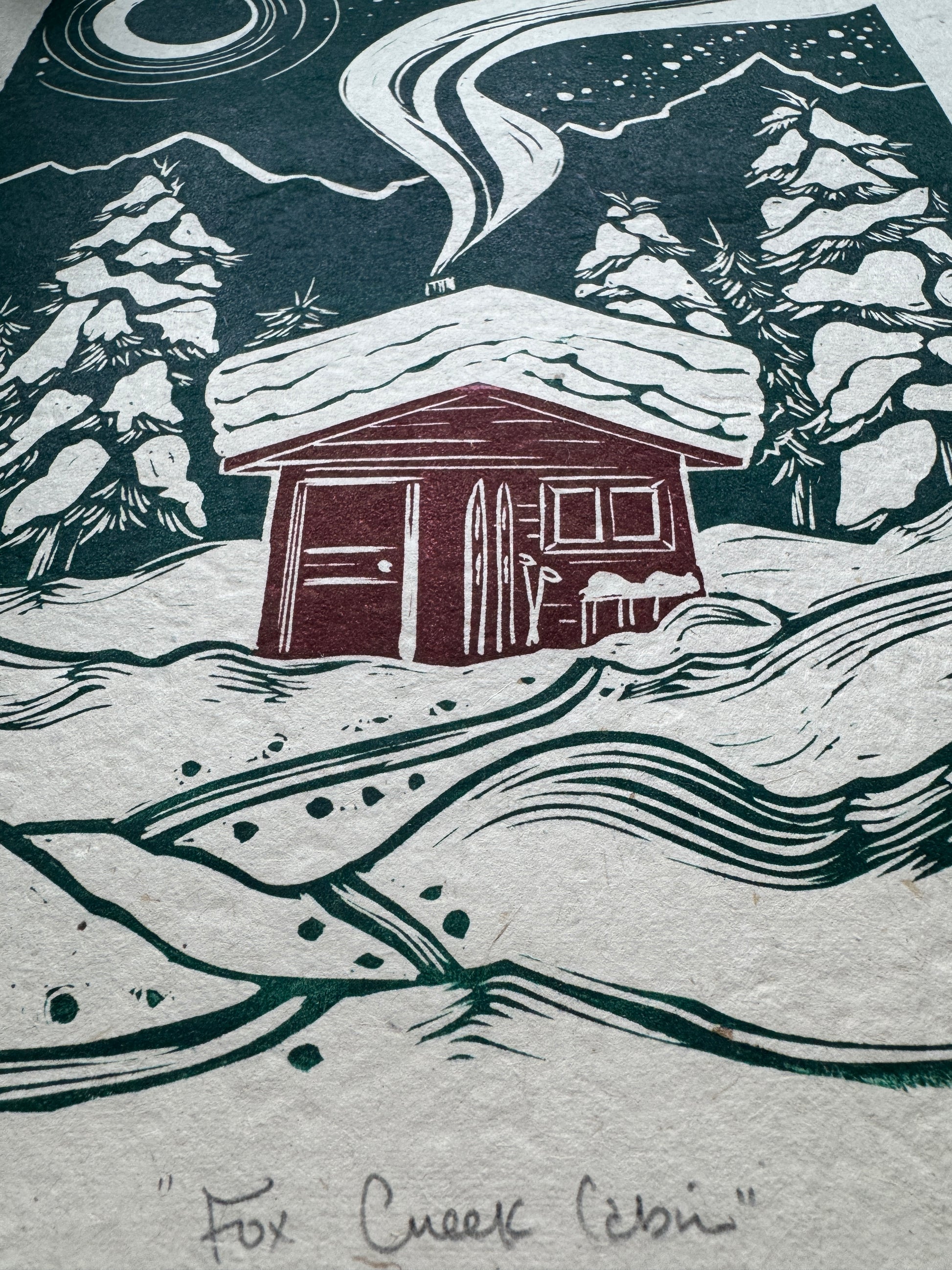 Inspired by a ski trip out to the Fox Creek Cabin on Resurrection Pass in AK. It was January - deep winter - and the snow piled high around the cabin making for a perfectly cozy evening.
