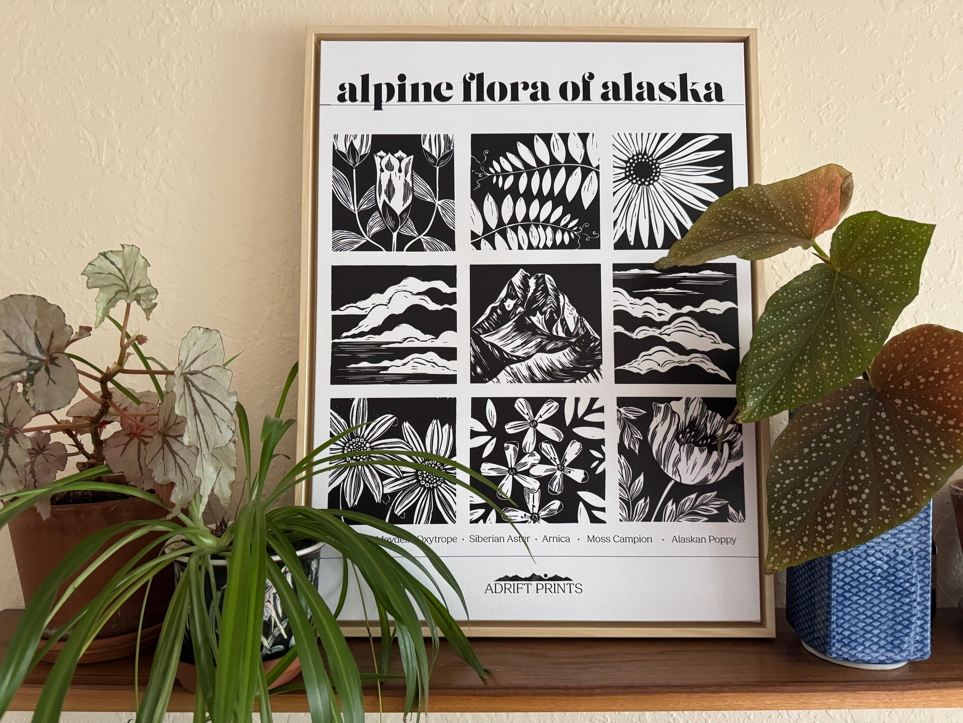 Framed Canvas 'Alpine Flora of AK' Print at Alpenglow Coffeehouse