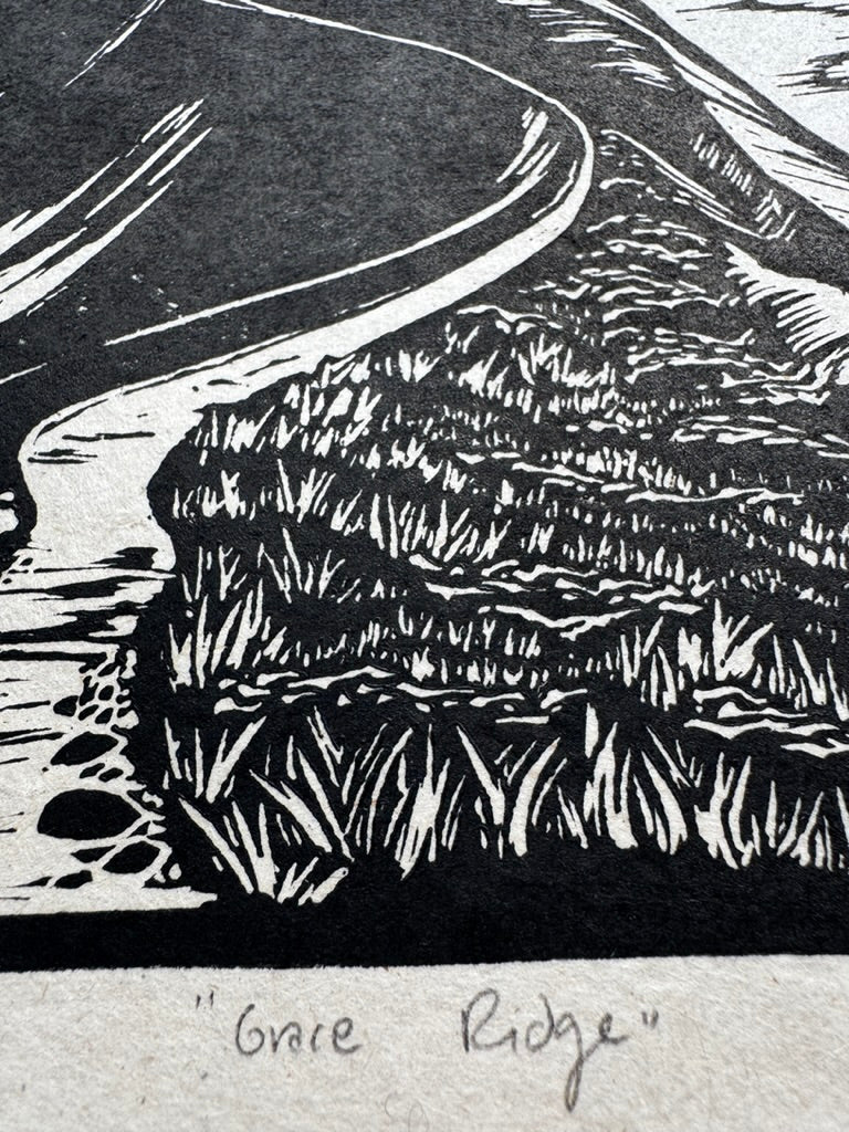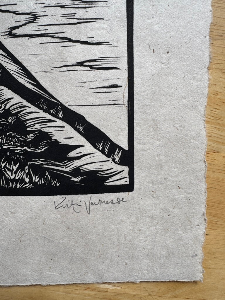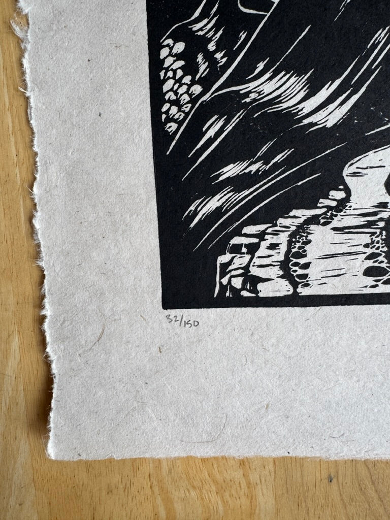 Prints are individually inked and pressed using archival, oil-based inks on beautifully textured Lokta paper. Lokta is a sustainable paper, handmade in Nepal with gorgeous flecks of fiber and texture. Each print is pressed by me with unique variations from print to print, perfectly original.