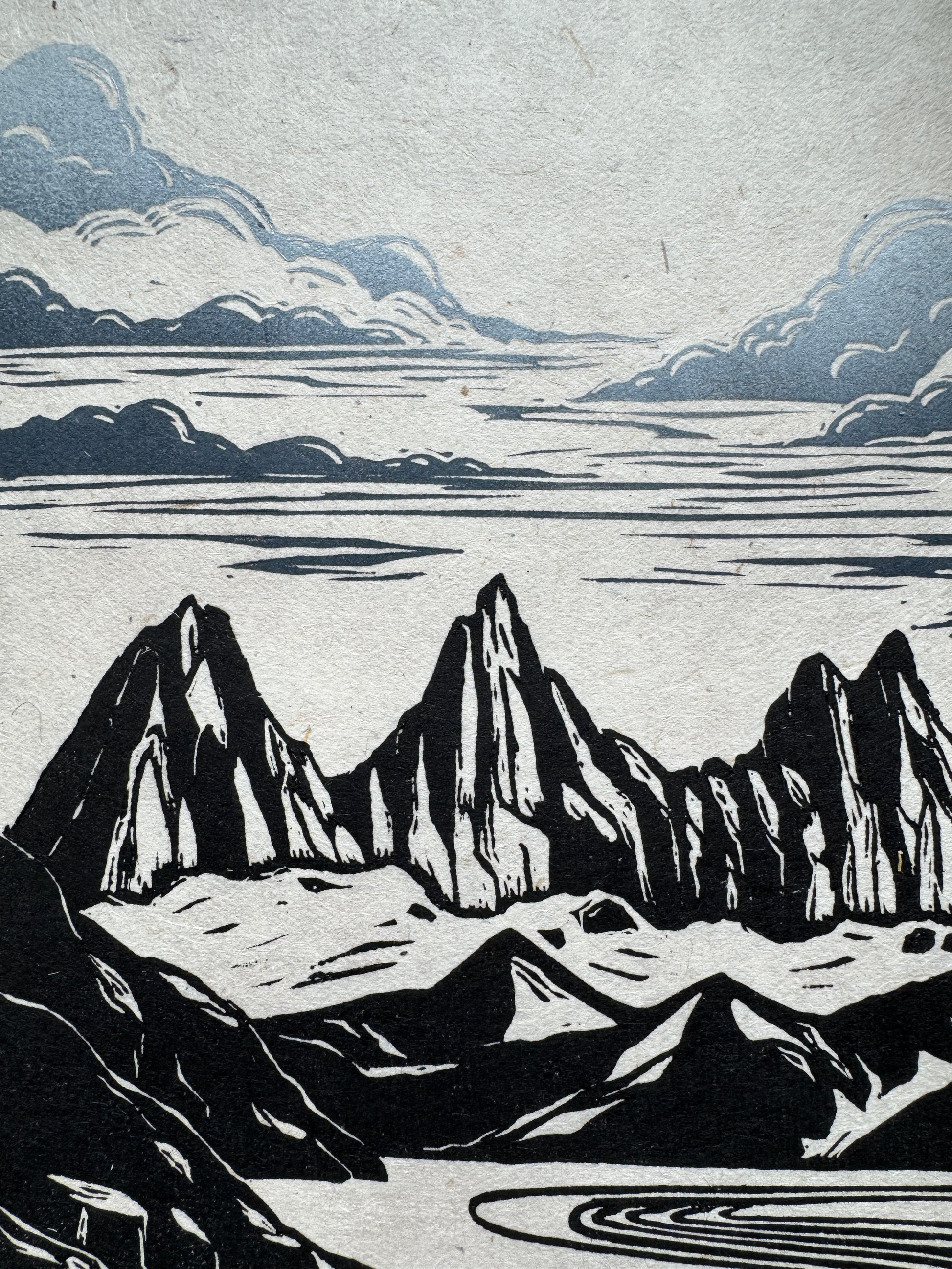 Prints are individually inked and pressed using archival, oil-based inks on hand-torn paper. Lokta paper is a beautifully textured sustainable paper, handmade in Nepal with gorgeous flecks of fiber and texture. The Japanese printmaking paper is smoother, pure white and machine made. Each print is pressed by me resulting in unique variations between prints, perfectly original.