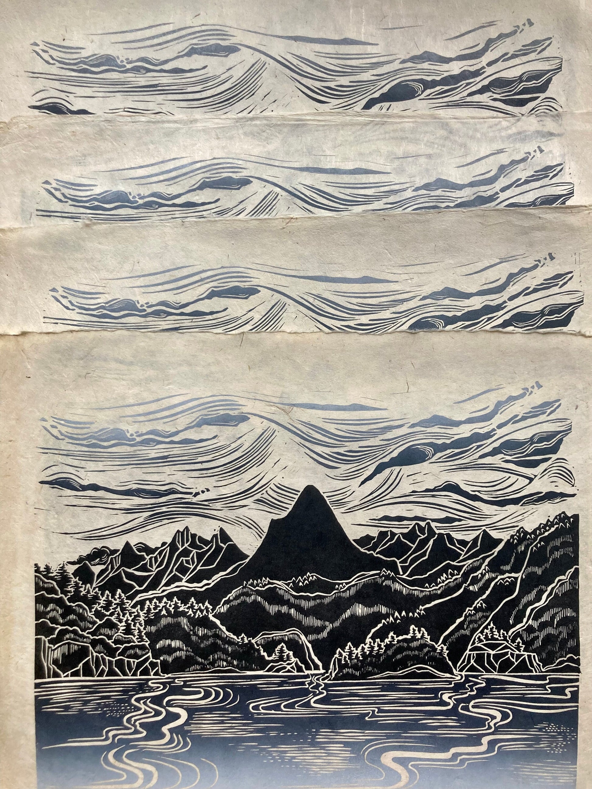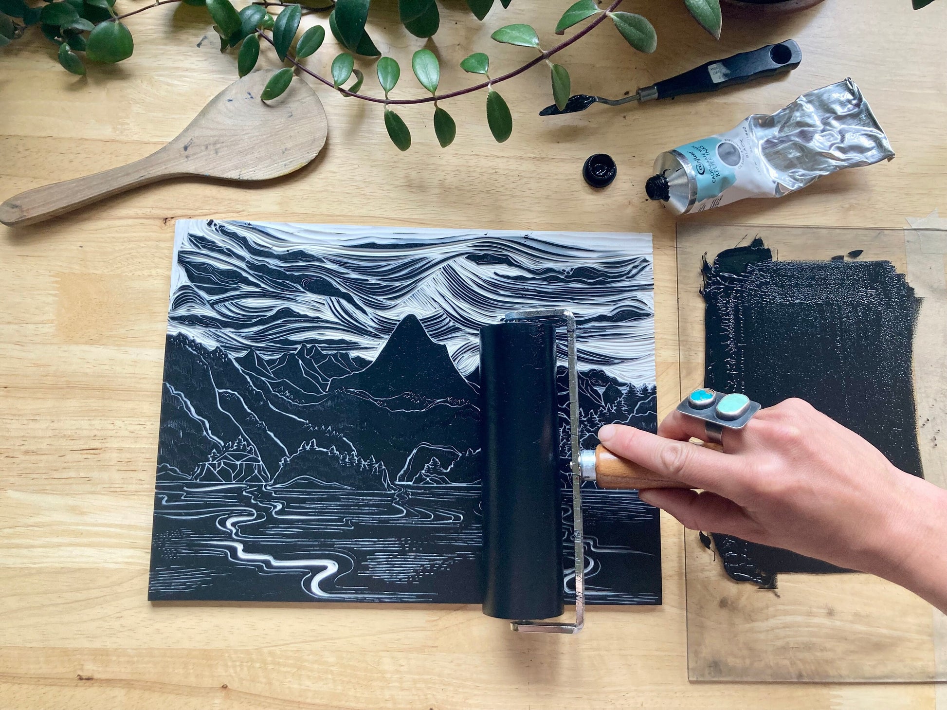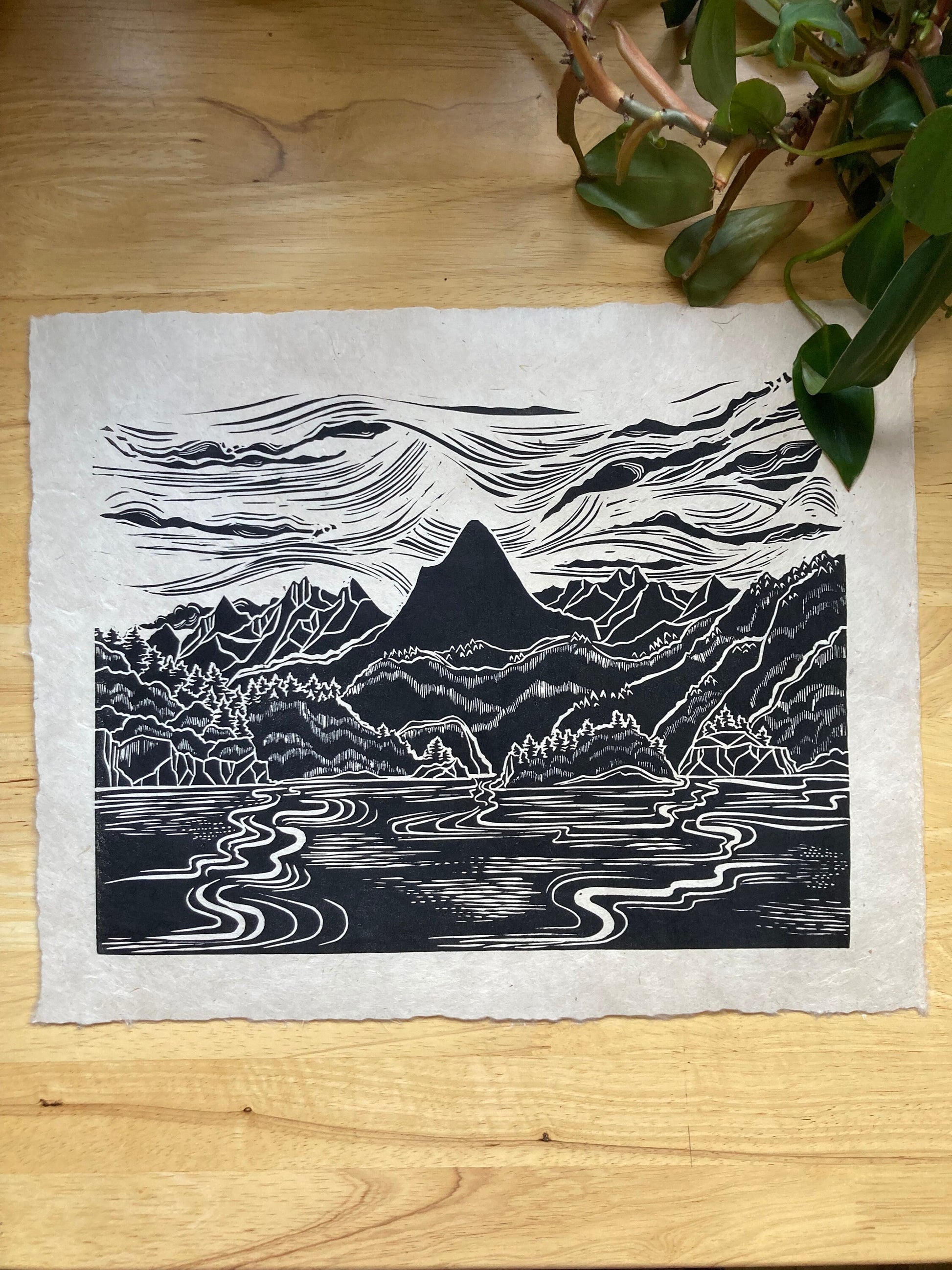 Prints are individually inked and pressed using archival, oil-based inks on beautifully textured Lokta paper. Lokta is a sustainable paper, handmade in Nepal with gorgeous flecks of fiber and texture. Each print is pressed by me with unique variations from print to print, perfectly original.