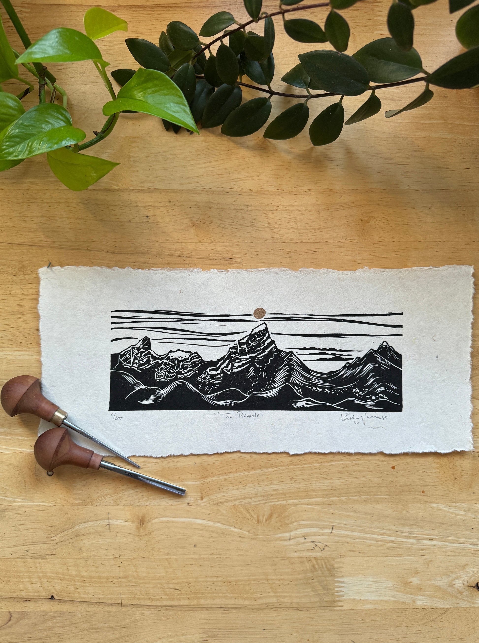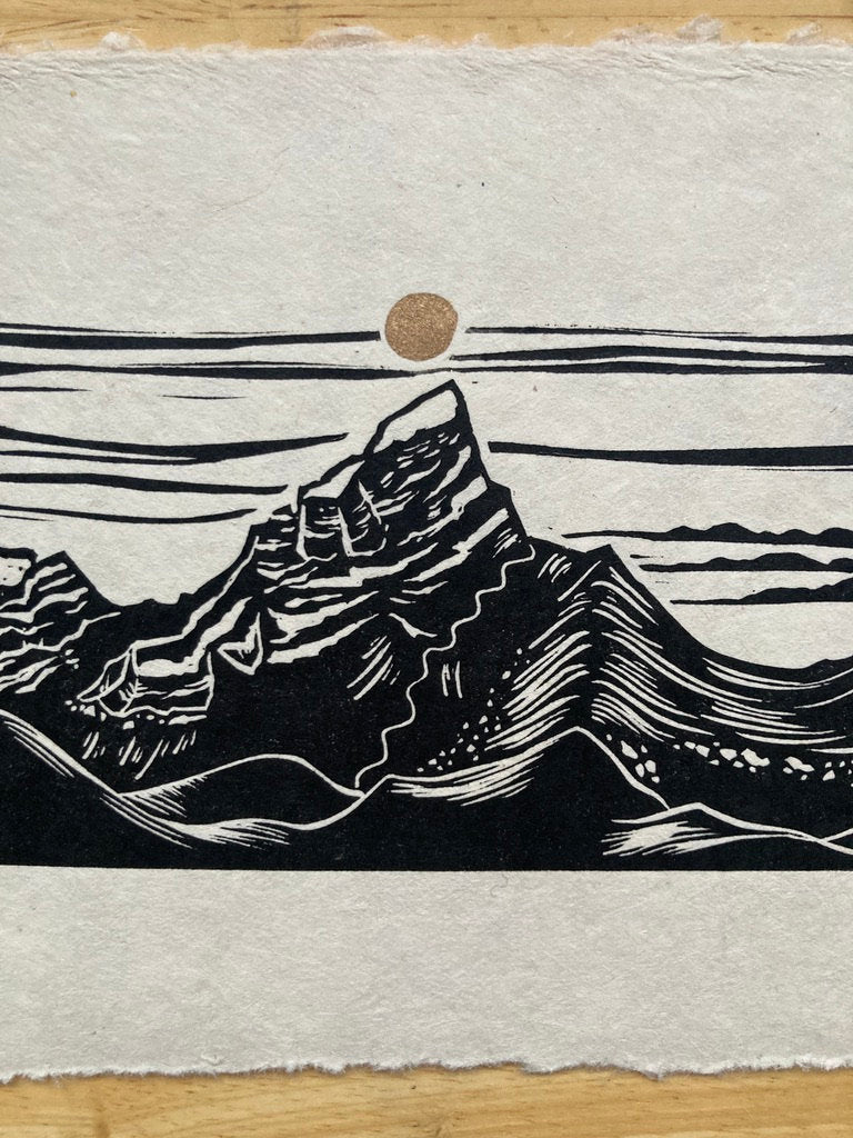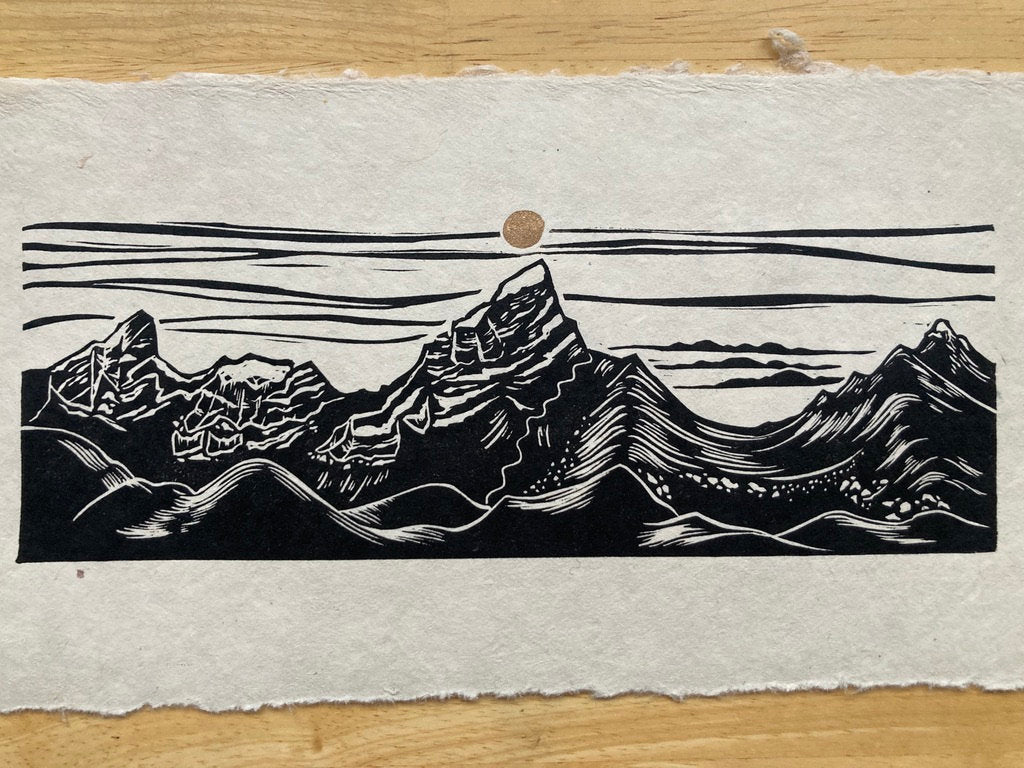 Prints are individually inked and pressed using archival, oil-based inks on beautifully textured Lokta paper. Lokta is a sustainable paper, handmade in Nepal with gorgeous flecks of fiber and texture. Each print is pressed by me with unique variations from print to print, perfectly original.