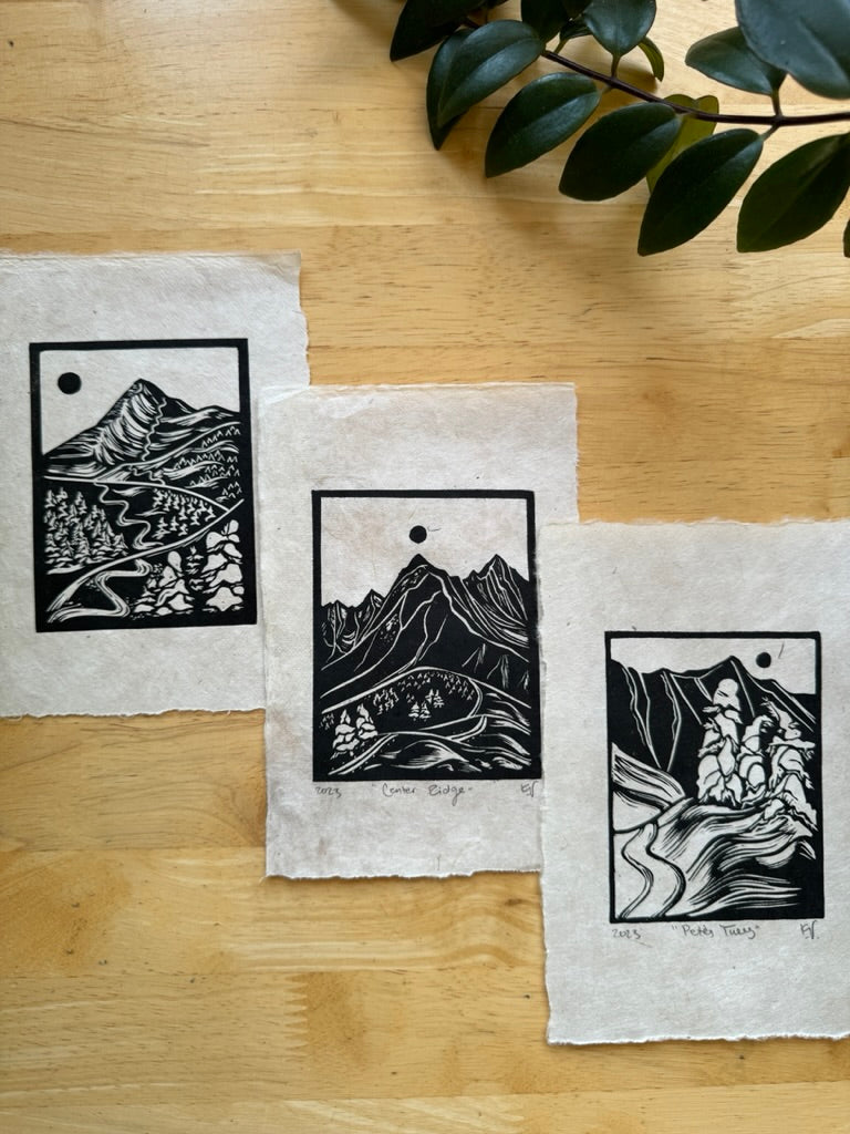 Makes a lovely pairing with my other mountain mini prints, all in the same size and style: Center Ridge + Pete's Trees.