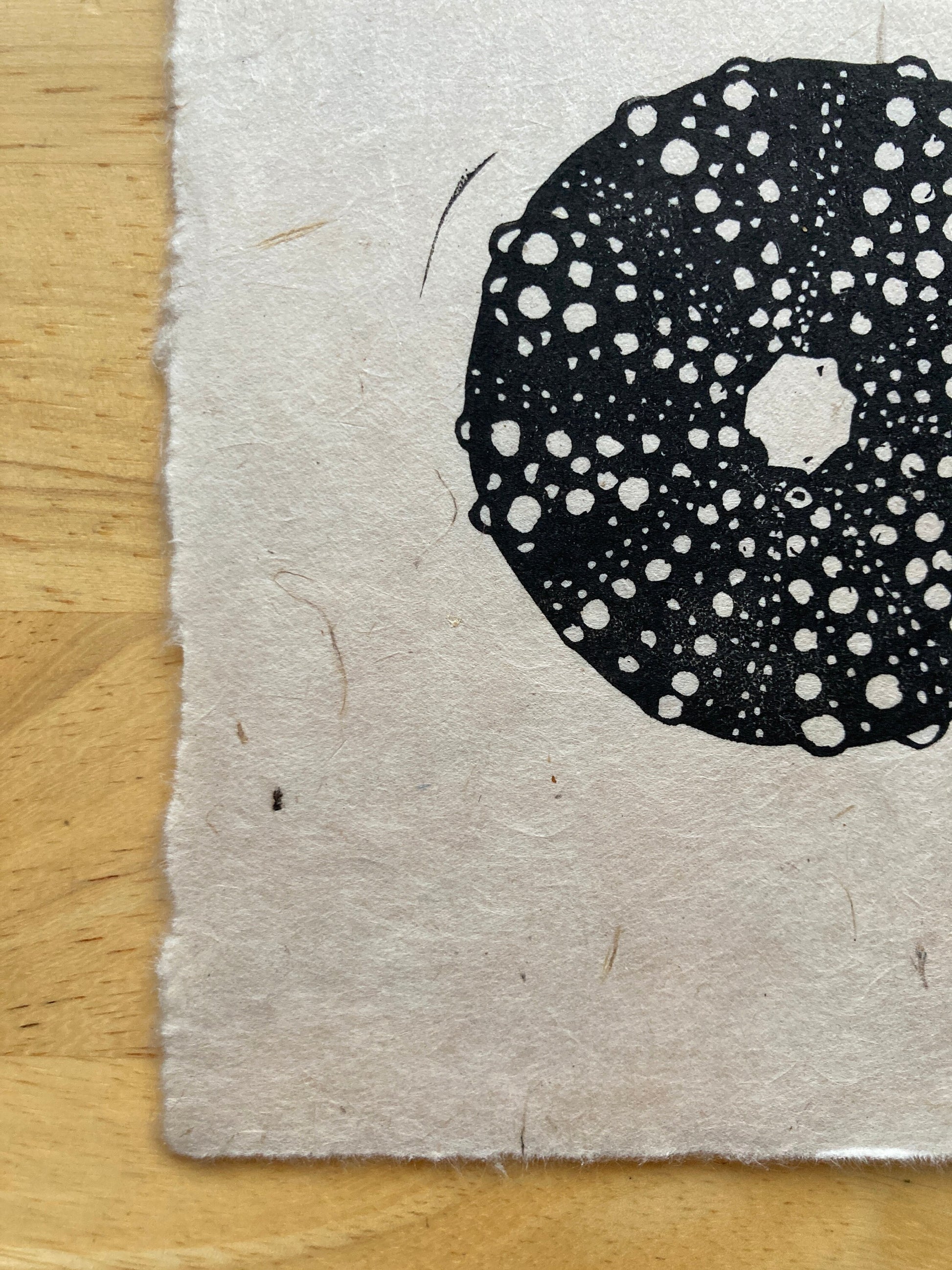 Ink is archival, oil-based and velvety black. Printed on acid free, natural Lokta paper. This is a sustainable paper, handmade in Nepal, with gorgeous flecks of fiber and texture - due to the handmade nature, sizing is not exact!