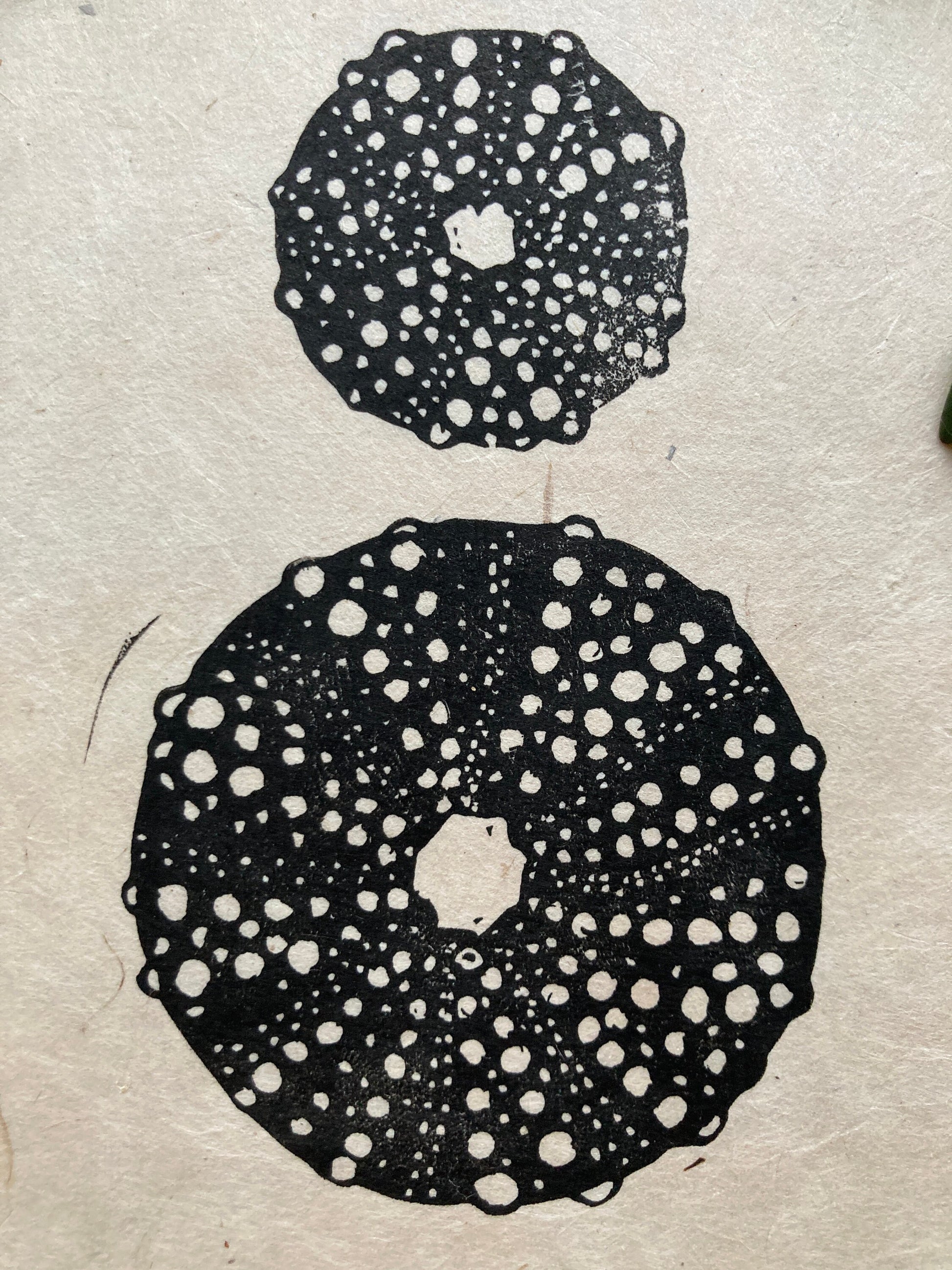 As a kid, I didn't initially connect the beautifully textured and dotted urchins I would find on the beach with the spiky pincushions found in the water, but their delicate shape always captivated me.